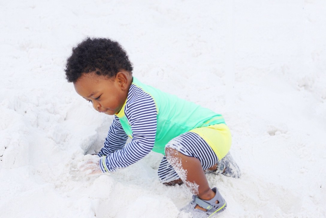 After taking Avery to the beach, I heard from many girl Mommas that their babes didn’t enjoy the beach so much because they didn’t like the sand touching their feet. Boys and Girls are so different and I’m not sure if this is common in boys but it is very normal in girls so don’t panic. Here are my top favorite things to do with babes who love and don’t love sand on the beach.