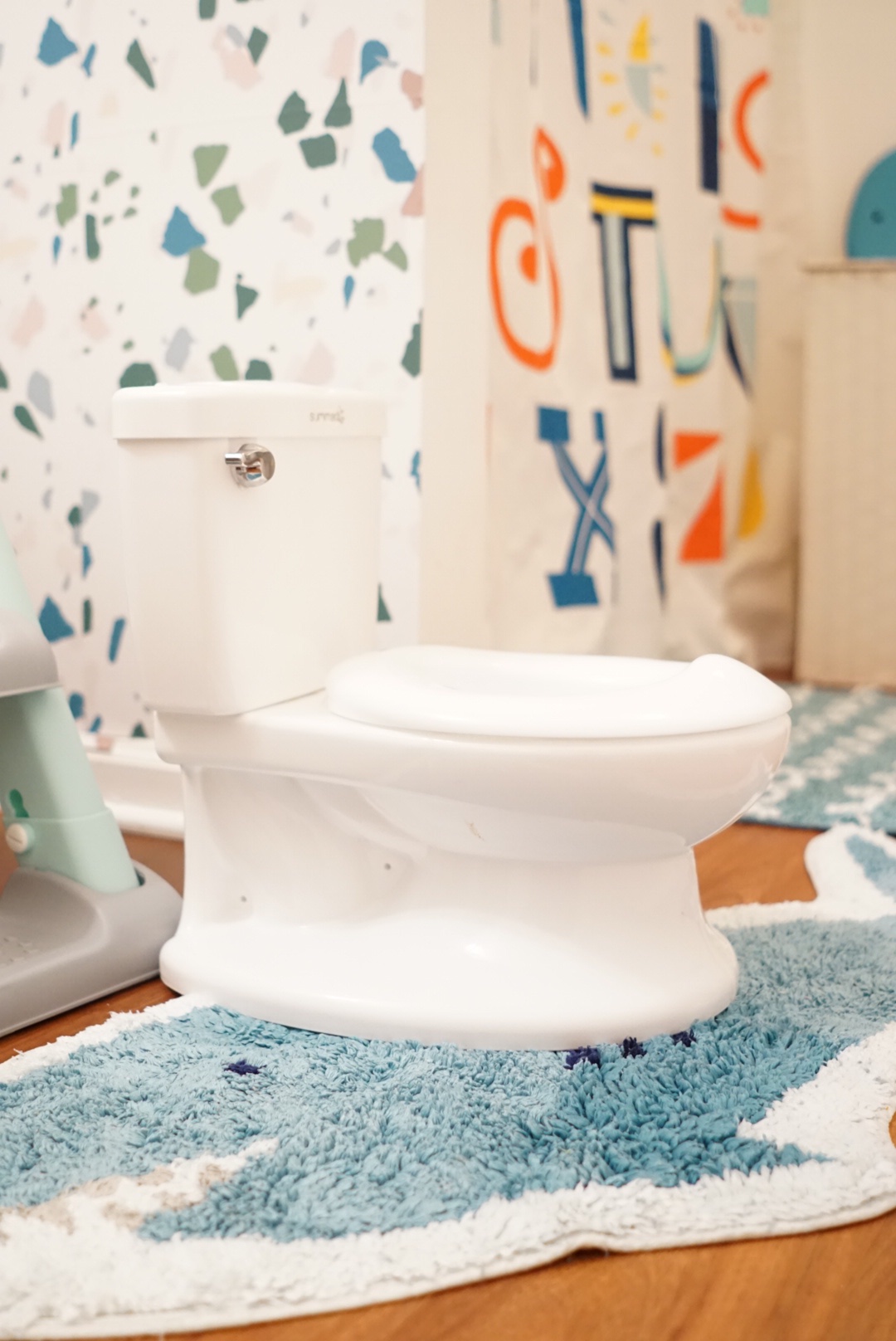 Let’s talk about the training potty first. I chose the Summer Infant My Size potty because it is literally a mini version of the potty that we as adults use and complimented the space well.